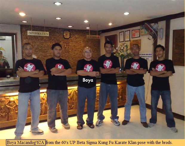 There are many more memories, among others, of Boya and the brods training and sparring at the UP Beta Sigma Kung Fu Karate Klan grounds of Master Johnny Chiuten at Area 11.