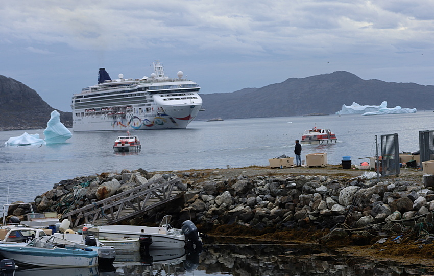 Nanortalik has no port so the ship uses small boats, called tenders, to bring passengers to shore.