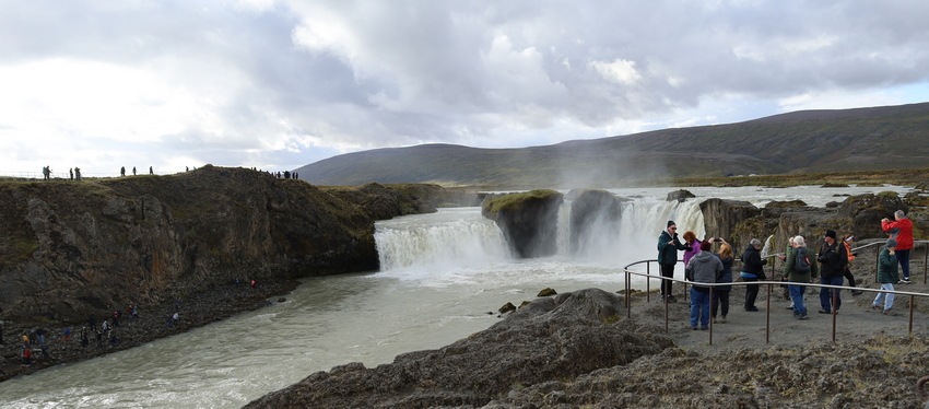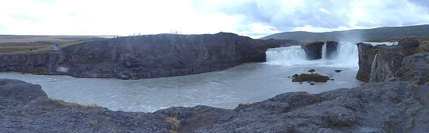 Godafoss: the water of the river Skjálfandafljót falls from a height of 12 meters over a width of 30 meters.