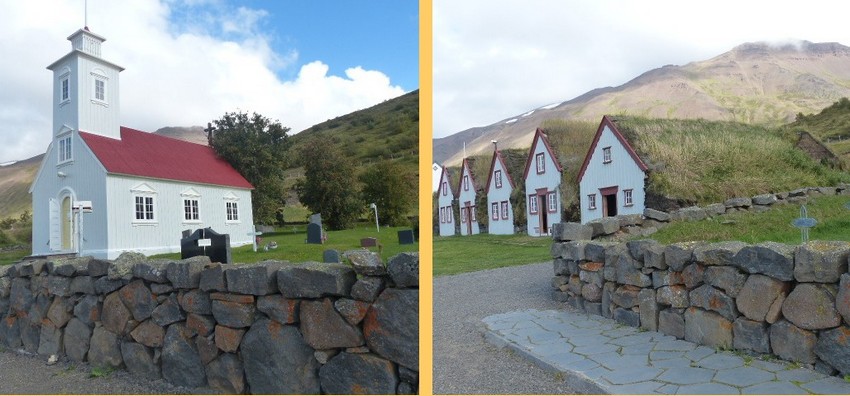 Turf houses in this town are, essentially, grass roofed houses. Turf, also known as sod, is a material consisting of grass on top of soil.