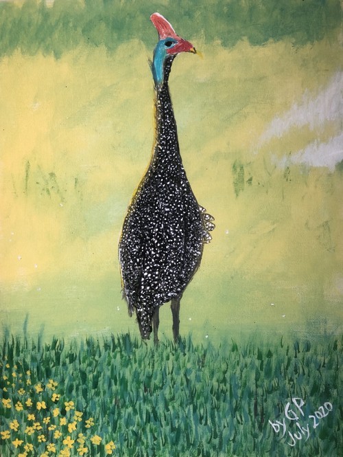 Guinea Fowl: acrylic on canvas 16" x 12"