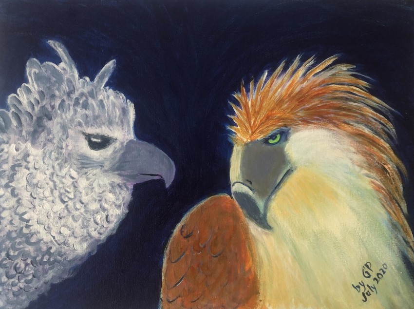 Harpy Eagle and Philippine Eagle: acrylic on canvas 16" x 12"