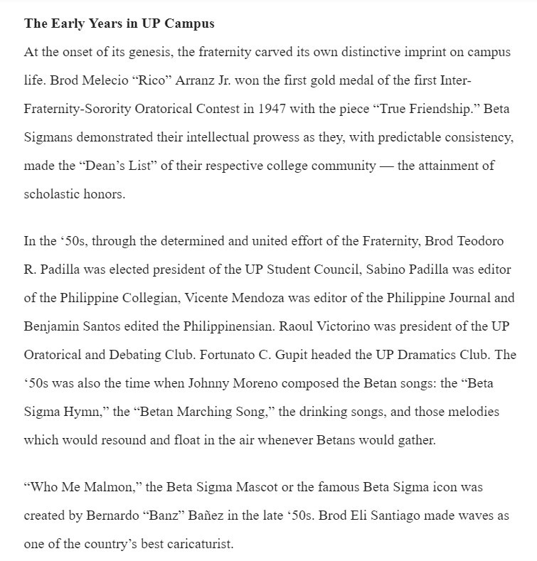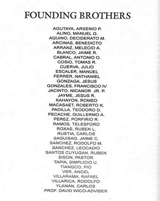 When Rolly recently gave me the missing DOB info for the memoriam of one of our remaining Founders, Atty. Ben Arcinas, he mentioned that he had interviewed them some years ago. He had published an article in his regular column at "The Manila Times" about our fraternity saga. I had not read it so he sent me the link. As I know the brods would be interested as well, I asked his permission to reprint it here in our International website's "Memoirs & Reminiscences" section. I have included some photos from the UP Beta Sigma 2006 Golden Anniversary Yearbook and UPBSI website "Memory Lane" section.