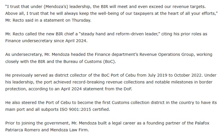 Source: https://www.bworldonline.com/top-stories/2025/11/14/712205/finance-usec-mendoza-takes-over-bir/