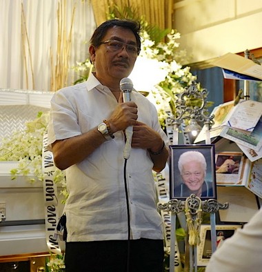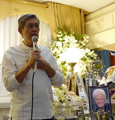 Ollie Jumao-as, Jopet Laraya, Nelson Rivera and Norman Bituin pay their respects at wake to Ric's wife, Phine.