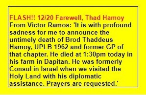 It is with profound sadness for me to announce the untimely death of Brod Thaddeus Hamoy, UPLB 1962 and former GP of that chapter.