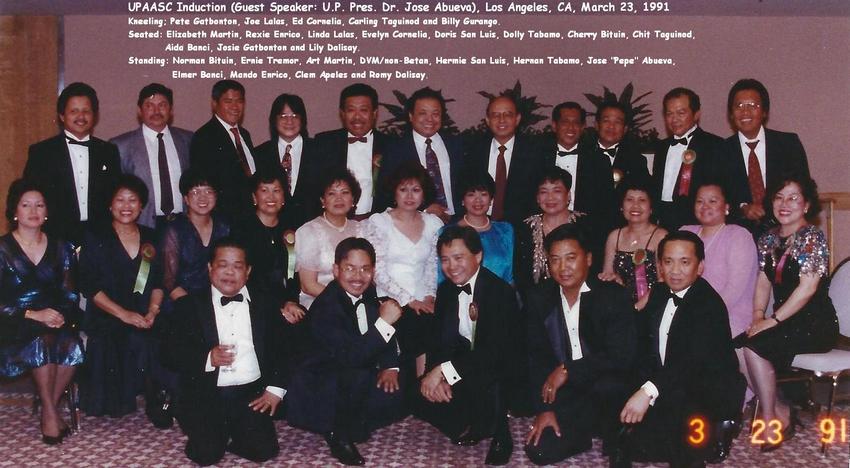 In March 1991, the UP SoCal brods and ladies had the honor of having Brod Pepe Abueva induct the officers of the UP Beta Sigma Southern California Chapter. At the house of Brod Carling Taguinod after the dinner reception, I remember Brod Pepe obliged us in karaoke with what must be one of his favorite Visayan songs, "Matud Nila". The following night, in his capacity as the sitting UP President, he also inducted the incoming officers of the UP Alumni Association of Southern California (UPAASC).