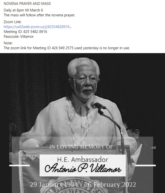 Rest in Peace Brod Amb Tony Villamor. Condolences to the Villamor family.