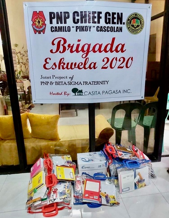 Volcano eruption victims with the Batangas Assembly; school supplies