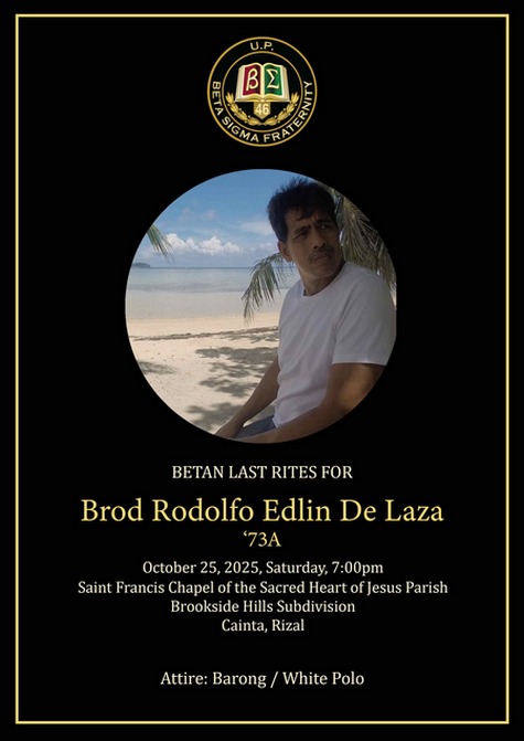 Rest in Peace UP Beta Sigma Brother Edlin de Laza.