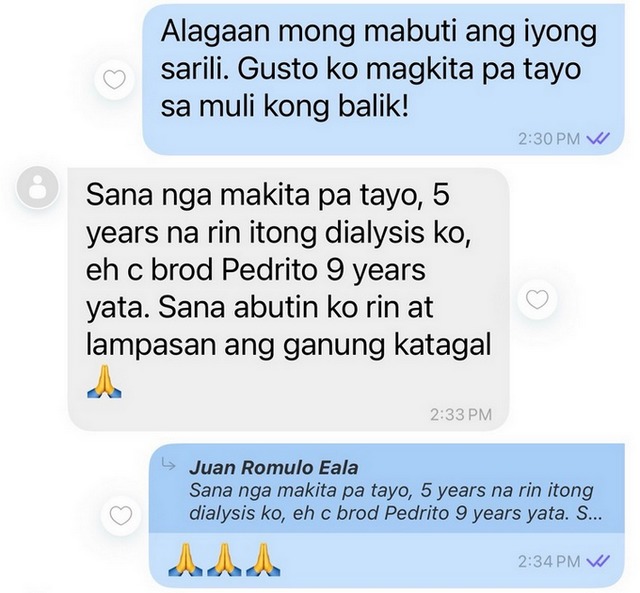 where he had his dialysis. (Mga pinsan nya Eala’s of San Pablo, former PBA Comm