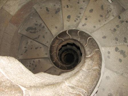 Steep stone steps form spiral staircases allow access to the towers and