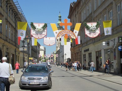 Streamers celebrate the beatification of Pope John Paul, the former Archbishop of Krakow, at the Vatican on May 1, 2011.