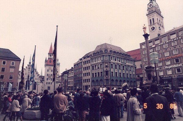 Marienplatz is a central square in the city center of Munich, Germany since 1158. In the Middle Ages markets and tournaments were held in this city square.