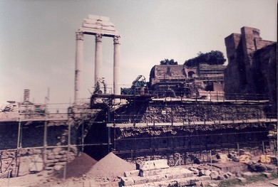 Roman Forum, a rectangular plaza with the ruins of important ancient government buildings.