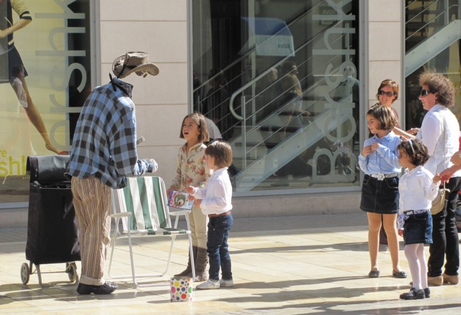Kids looked perplexed as the "headless" man talked to them, and later gave them candies.