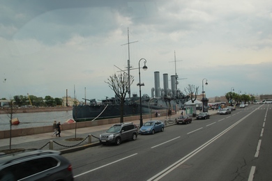 The Cruiser "Aurora" during the October revolution of 1917 gave the signal (by firing a blank shot) to storm the Winter Palace. After the war the ship was restored and used as a free museum and training ship for cadets from the nearby Nakhimov Navy School.