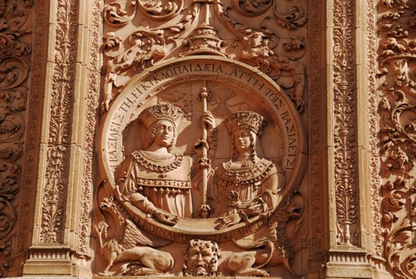 Detail of the facade. Medallion of Los Reyes Catolicos --- Fernando and Isabela