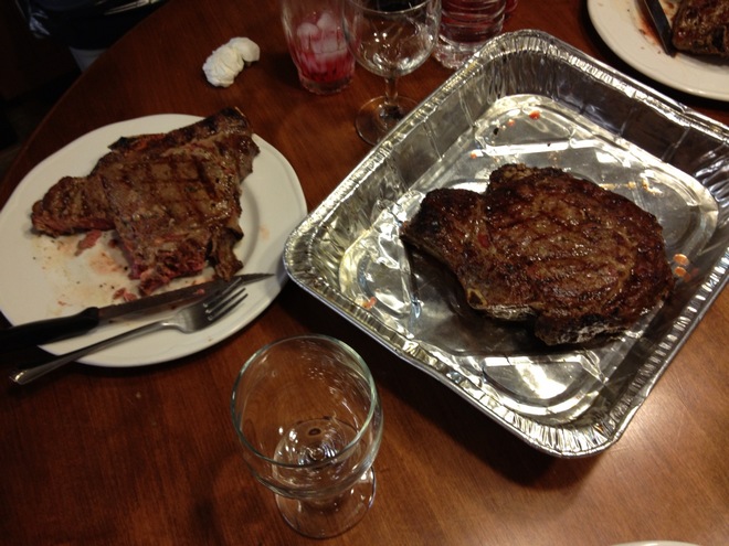delicious dinner, Julius consuming a 24-ounce cut, with lots of