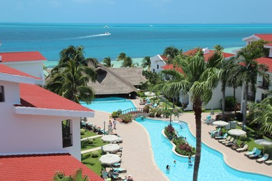 From the Royal Cancun Resort past the indoor swimming pool, one walks right to the beach.