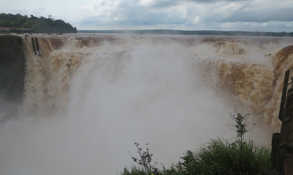 Near our hotel is where the rivers Parana (clear water) and the Iguazu (brown water) converge.