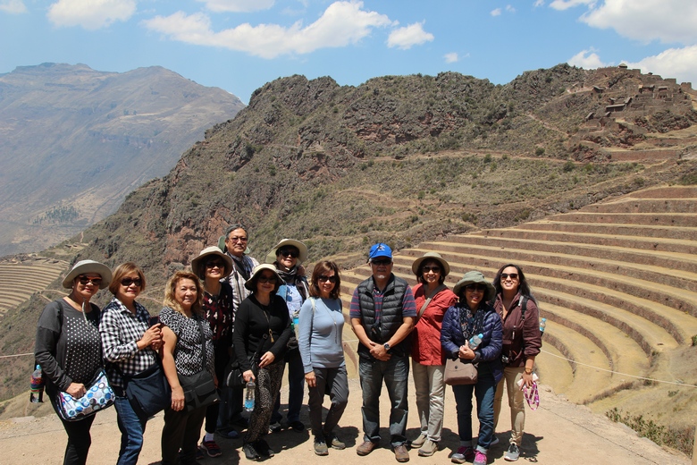 All airport shuttle and land transport bus and/or van, exclusively for us, are provided. Here with our Cusco tour guide, Aracely.