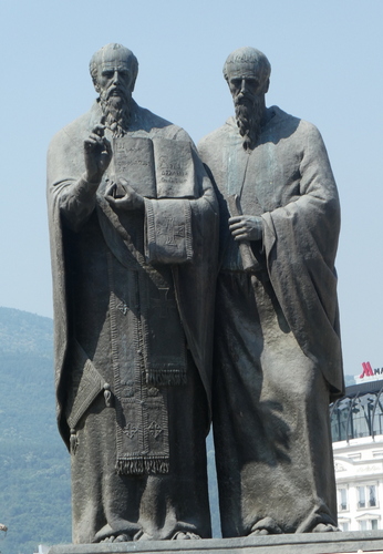 brothers Cyril and Methodius who developed the Cyrillic alphabet.
