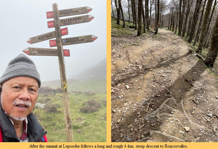 1) There are two routes from Saint Jean Pied de Port to Roncesvalles: the high or Napoleon route (so called for Napoleon's 1815 escape from Elba to Grenoble on this road); and the low or Varcarlos route.