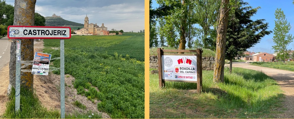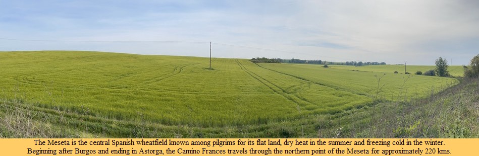 A wide-open walking landscape as far as your eyes can see. Towns coming up: Cardeñuela Rio Pico, Orbaneja Rio Pico, Villafria, Burgos.