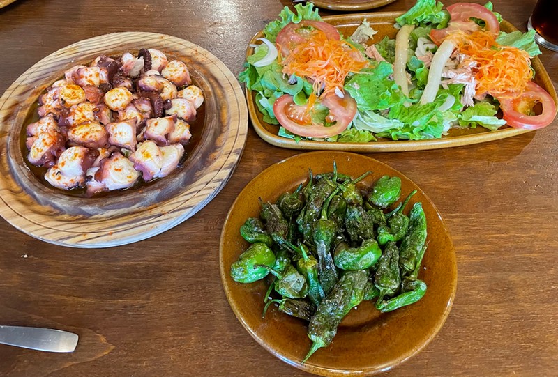 Melide is known for its "pulpo" (octopus), our lunch with ensalada mixta and padron peppers at Garnacha Pulperia.