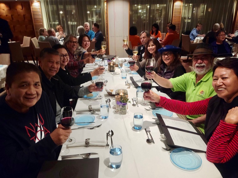 This is a well-rounded group of food and drink enthusiasts. Say “Veuve Cliquout” & “Taitinger” champagnes, “Glenlivet” aged single-malt whiskey, “Blue Label” scotch, you name it - all to mix with the fine food served daily. We all had the Silver Spirits Package which is a must for any true imbibe and fun-loving Betan (and gang). The bartenders and servers (some Filipino) were eager to please and so the drinks flowed.