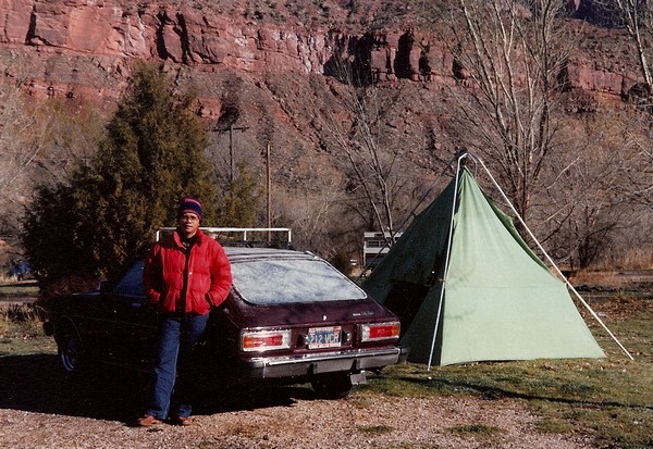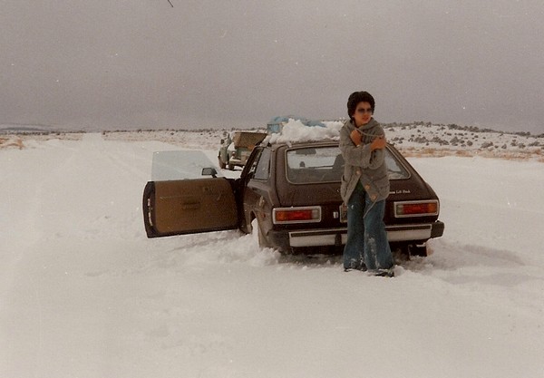 In contrast, on spring March 1980, a sudden blizzard caused us to hurriedly pull down our tent in a campground in Arches and sleep the night in a motel in Moab (top pic); then we got stuck in the snow trying to go inside Canyonlands (bottom pics).
