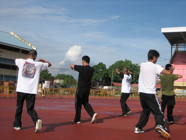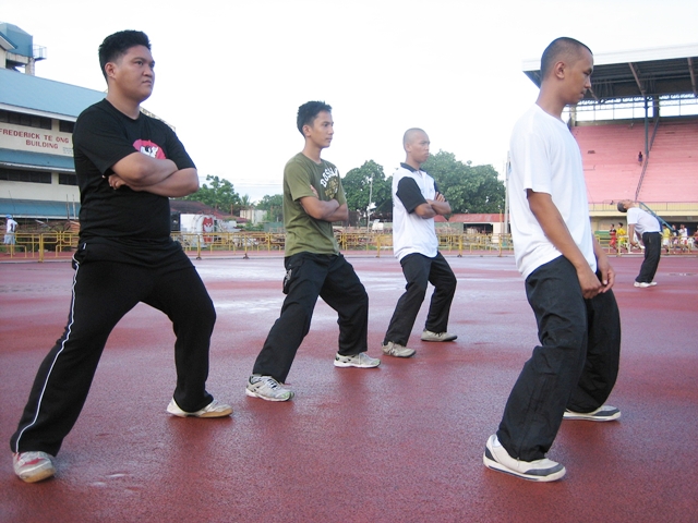 SOMA training always starts with 10 rounds jogging at the Cebu City Sports Center oval at 5am. This is followed by Tetada Kalimasada: one round of Duduk Nafas, Perdana and Dasar.