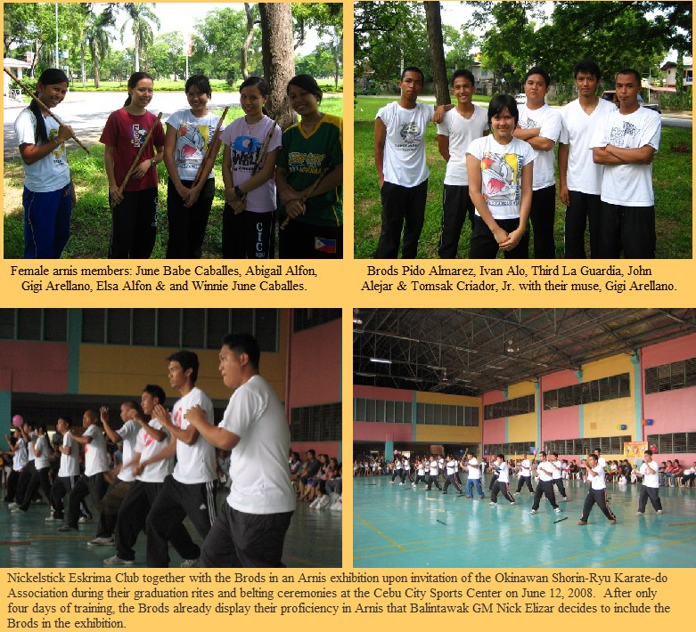 Brods for the first time were introduced to Arnis or stick fighting, Balintawak