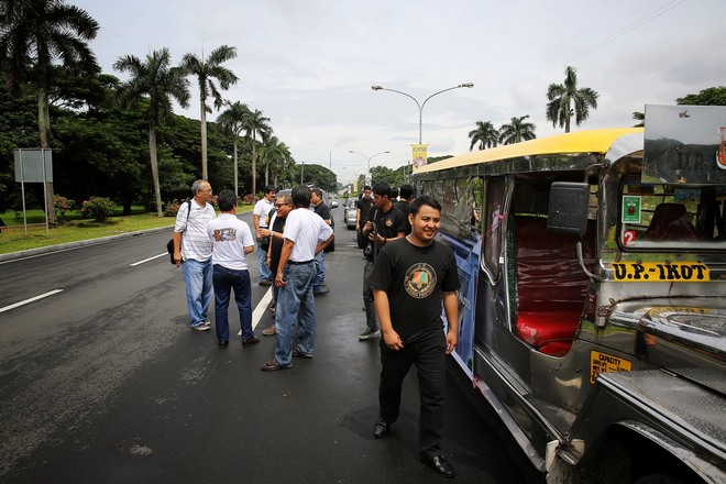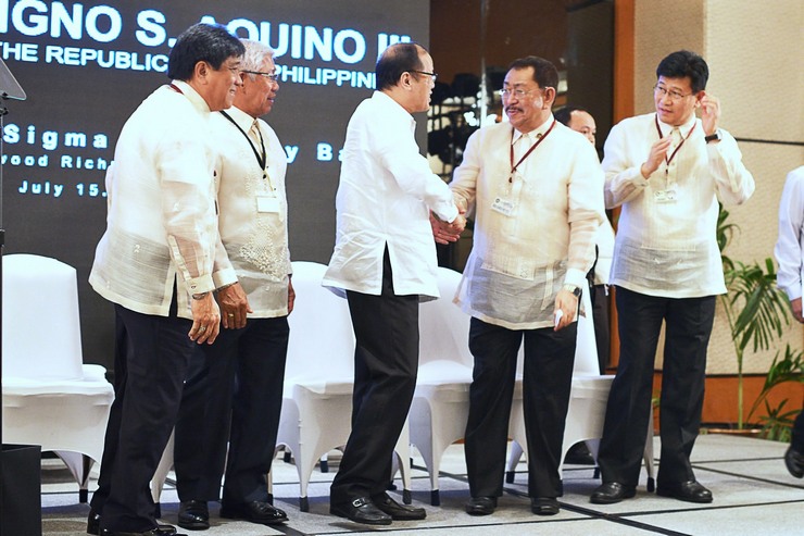 Philippine President Benigno Aquino III arrives, with Defense Secretary Brod Voltaire Gazmin