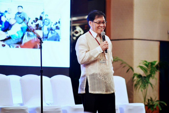 UPBSF Central President Rolly Reyes '66 gives welcome remarks