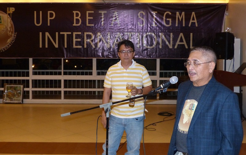 Sumptuous dinner and lots of booze were served at the fun-filled clubhouse, where the decibel level was so high one has to raise one’s voice in order to be heard. Dinner was sponsored by UP Beta Sigma-International (courtesy of Brod Ike Araneta and Tatang). It was also here where new UPBSI President Noli Nolasco and his Board of Trustees were inducted by immediately previous Central President Rolly Reyes.