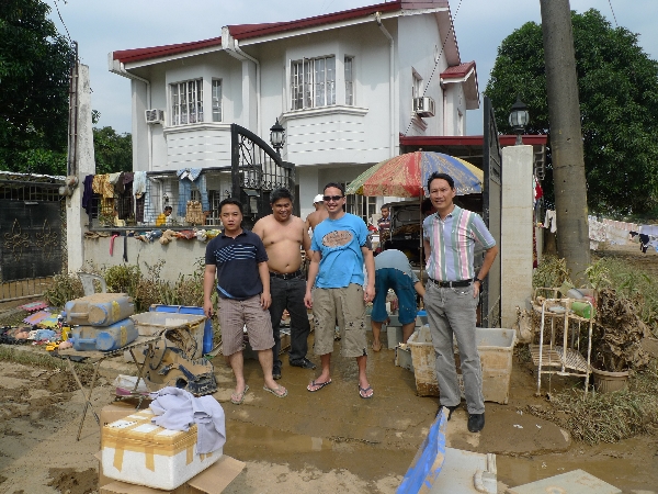 To my batskas Alex Bermas and Jerome Obviar who risked their lives in an initial attempt to rescue us as early as 1030 am Saturday morning, salamat. Alex picked us up from the hospital 430am Monday morning and offered their place as a temporary shelter for my family. To the OBBF especially to the Operation Sunshine crew who visited my place and brought more than sunshine while we were salvaging what was left of the first floor: Melvir Buela, Raffy Hidalgo, Chito Tapawan, Leo Robel (also a victim but readily volunteered to help), salamat. To all the brods from UPBSFAA and UPBSFI who extended help and offered prayers, you may not know me and I may not know most of you pero maraming salamat sa inyong lahat. Most of all, to my fellow residents who spent at least two days of their time helping us clean up instead of loading up on booze during their unexpected vacation: GP Prince Elmer Reyes, Kim Montaniel, Allan "alaska boy" Ibanez (bunso), Danilo Si, Renz "ozner" Caligua, Oliver Simon "Monsi" Tejero, Jomar Antuerpia, Joseph "joeyboy" Alvarez (who celebrated his batch birthday helping us out), and Alexis "dogz" Dogwe, maraming salamat mga brods. Ang huhusay niyong maghugas ng plato sa ga-ihing patak ng tubig! I may have missed some names but sincerely family and I would like to thank the whole UP Beta Sigma Fraternity for the help.