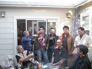 PAL Flight PR102 arrived as scheduled at LAX on Nov.1, Sunday at 6:45p. Brods Edsel Arceo, Nonoy Bautista and Art Martin were there to meet Kim and Dan. Before bringing them to Brod Hermie San Luis' house, first stop was dinner and beer (though the dorbs couldn't, under 21) at Hooters at Anaheim. Some of the brods came to join the fun. Trying hard to finish it up Kim said at his half-pound, "Ang kapal ng American burger".