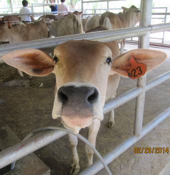 The photos of 24 Philippine Native heifers were taken from the Mindanao Cattle Research and Development Project (MCRDP), UP Mindanao. More than 50% of these heifers were artificially inseminated with semen from a certified line bred Miniature Hereford bull from the US. The semen was donated by Brod Cecilio T. Felix, DVM, a retiree from Rancho Murieta, CA. The MCRDP was established through a Memorandum of Agreement (MOA) last February 12, 2012 between the three parties: the University of the Philippines Mindanao, the Bureau of Animal Industry, DA and Cecilio T. Felix, DVM, US. The first generations or F1s will come out during the last four months of the year, 2014. Through a tested line breeding procedures, the project will develop a Philippine bull that can reproduce itself down through generations, and develop as well the cow population as a breed.