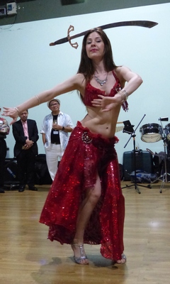 A sword-wielding Mediterranean dancer gyrates and tickles Brod Nonoy's belly button:)