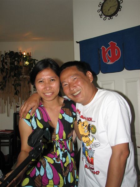 From the South Bay came Gabby Moraleda with a glowing Cy in tow, Gene Samson and fellow always present Ric Velasco. Ding Cavestany and Julie dropped in for a few hours with their very cute apos who provided some very animated dancing with their lolo. The ever-smiling Gene was touting the health benefits of his BAGO (equal parts of banana, apple, grapes and orange) fruit diet. Exhibit 1: the now healthy complexion and constitution of Louie R. Exhibit 2: the very much alive Pa Q, who unbeknownst to Gene is using BAGO to wash down his very generous consumption of both meats and carbos.