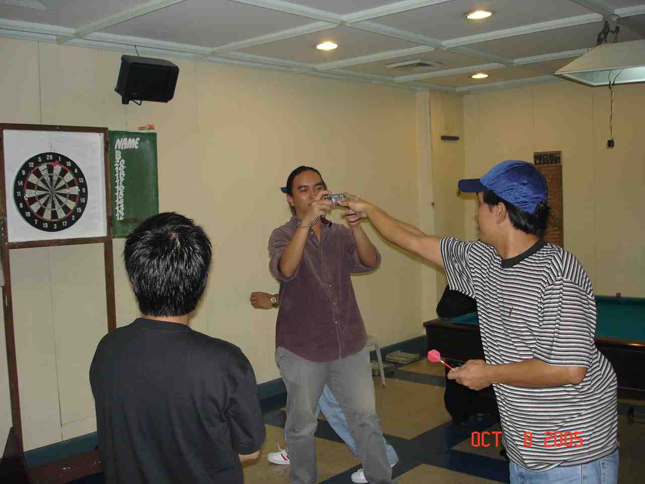 The 3rd OBBF Olympics went underway last October 9 2005 at the Makati Sports Club with the Ortigas as this year’s organizer. In a well-attended opening, the four participating teams of Quezon City, Ortigas, Makati and the Diliman Residents displayed their skills in the initial games of 8-Ball, Rotation Billiards, Bowling and Darts. Matches were fiercely contested at the outset, with games frequently pausing for exchanges of verbal abuse. Competition was nearly as intense as the fraternal camaraderie amongst brothers, with new rivalries and friendships forged, and old ones restored and polished.
