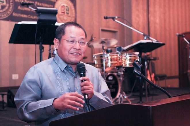 Pastor Rod Reyes delivers invocation Edsel Arceo introduces guest speaker