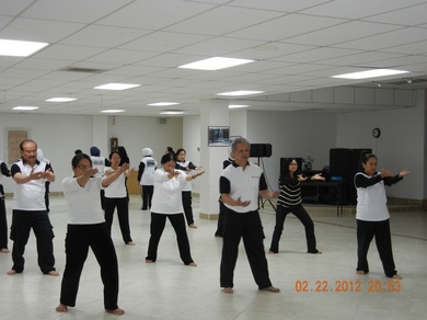 Danny Galoso and I attended two evening sessions with the Los Angeles Chapter. For me, it was a privilege to meet for the first time and practice under the watchful eyes of Pak Eddy and Ibu Ida. On the other hand, it was a happy reunion for Danny who traveled to Palu, Indonesia in 2009 to intensively train for ten days and get his Assistant Pelatih 1 (or Aspel 1, for short) certification and be "connected" by the Tetada Grand Masters. On the first night, Dan and I were given the task of teaching and leading the beginners on the "perdana" jurus or movement. On the second night, along with the regular members, I did the "dasar" and "dasar satu" with Pak Eddy and Ibu Ida providing guidance. According to Danny who was talking to Ibu Ida, I was "connected" by Pak Eddy to "dasar satu".
