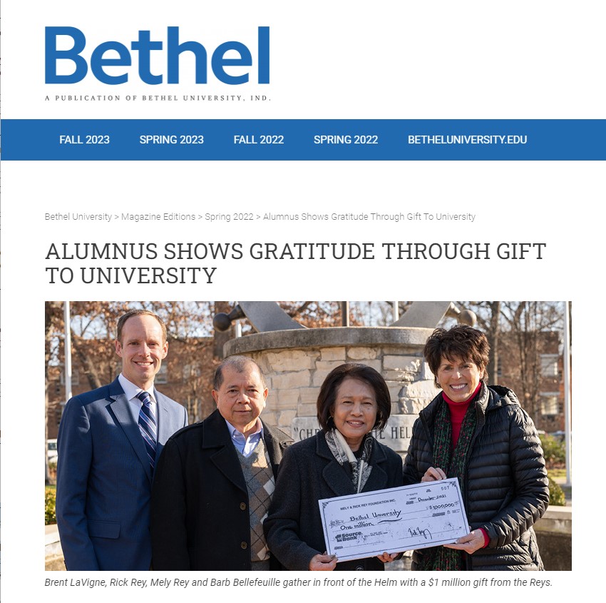 Link: https://magazine.betheluniversity.edu/2022/04/13/alumnus-shows-gratitude-through-gift-to-university/